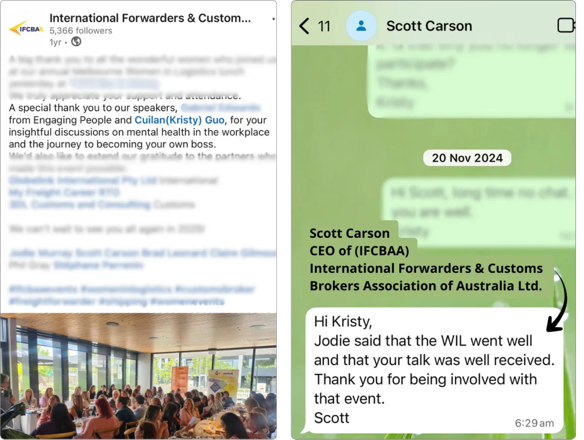 Kristy has been personally learning from the world-class speaker Vinh Giang, who commands up to USD 200,000 per keynote.